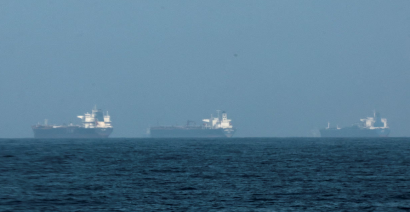 아랍에미리트 푸자이라 해안에 유조선들이 정박해 있다