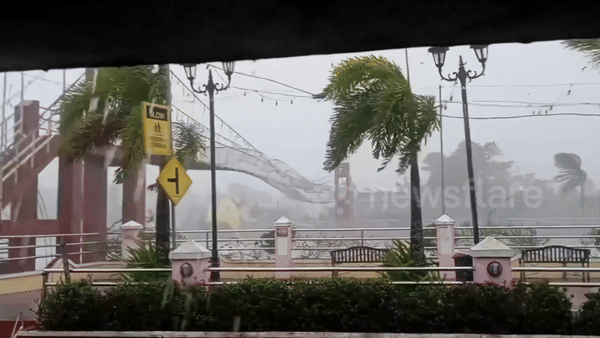 지역의 명물인 카말리간 현수교가 거센 비바람에 크게 흔들리는 영상이 포착됐다.